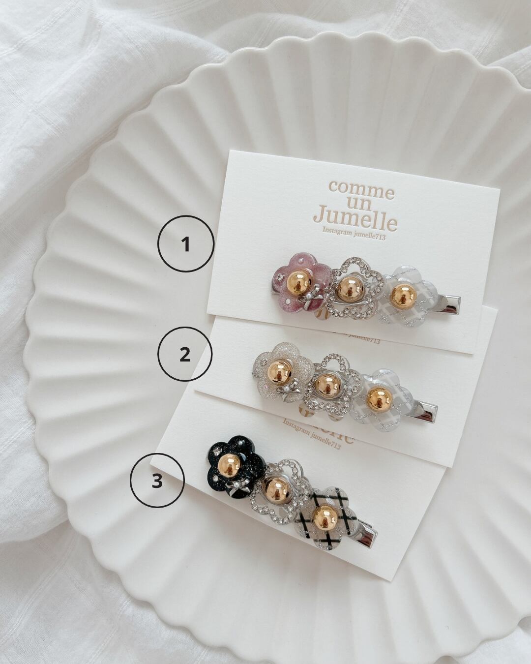 ヘアクリップの土台はゴールドorシルバーカラーからお選び頂けます